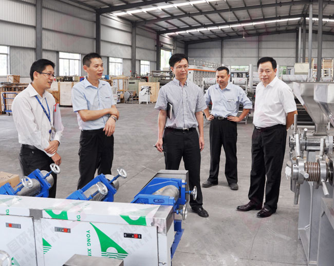 李局長一行來到公司就深入車間了解生產(chǎn)情況,在河粉機裝配車間李局長詳細詢問了河粉機的功能原理和價格,當?shù)弥獓信坪臃蹤C占領了國內(nèi)主要市場時十分高興。李局長一行還在公司黨支部活動室觀看了廣州電視臺播出的報道我司開展黨建工作的《紅棉璀璨》專題節(jié)目,隨后開展了討論,對我司黨建工作開展的有聲有色給予了高度評價。